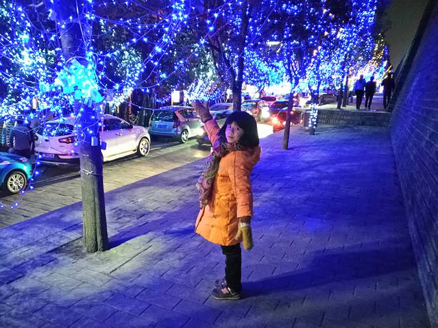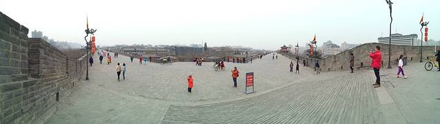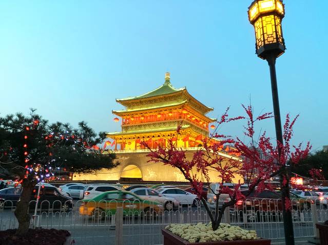 睡到自然醒,一个人溜到回民街去尝了久仰大名的刘家伊味肉丸胡辣汤,6块一大碗加1块钱一白馍,胡辣汤就是各种蔬菜家牛肉丸调成的糊,有点像绍兴的单糊,但胡椒味很浓,加香香的辣子后,口味还算行,但不一定都吃的惯。吃饱喝足拉上女儿老婆去第1次乘坐地铁,钟楼到小寨3站每人2元,小孩免费(西安公交地铁130CM以下都免票),走300米到达小雁塔,凭身份证免票进园,看了小雁塔、撞了三下钟、参观了西安博物馆。中午上城墙,2大男人租上自行车环游古城墙,女人带小孩乘电瓶车(有2人的自行车,记得带小孩的话要说是10周岁以上,否则不让租)。晚上6点城墙上看灯展,城墙成人54元,120以上学生半价,自行车40元2小时一辆。