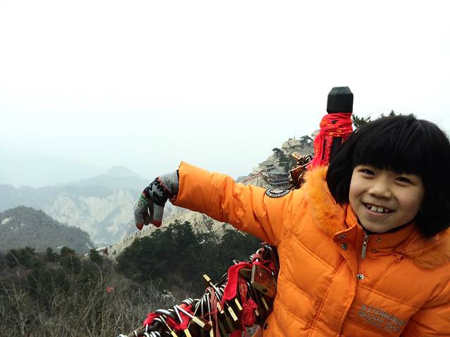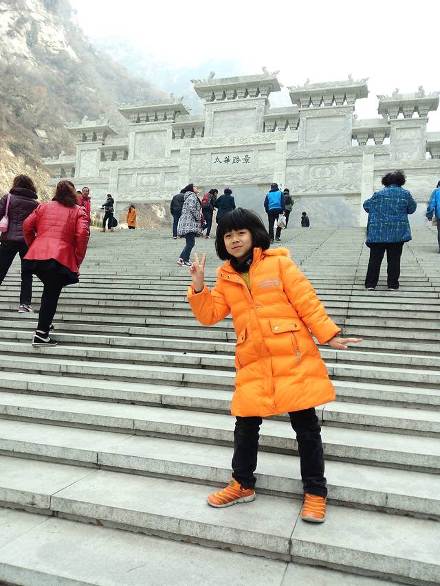 出发前也做了华山的攻略,但同行的朋友说为了老婆不孤单,不和我去了,向往华山的险、美,拖上女儿连骗带拐的出发了。为了图省心我们报了酒店里的华山一日游,整个行程花费985元。自己去的朋友可以早上6:33坐钟楼地铁到火车北站,7:53高铁到华山北,出门左直行坐2路或打的到华山游客中心,买上套票,一般是西上北下坐缆车,西离最高峰南峰近,所以只需爬很少的山路,然后基本都是下坡路,这样省力点。我们由于是报团游,所以8点上车,11点到游客中心,吃基本全是素菜的自助餐,大小统一38一个,好不容易见到荤的上来了,还没走近就没了,抢庚饭。5个公司管华山,所以5种票看的你眼花,华山大门票100、进山车西40、北20、西索道120、北索道45。吃饱上山,索道惊险、山峰险峻、台阶陡峭,走的我第2天下楼好像机器人。为了物有所值,我们俩东南西北峰都跑了一圈,5点下山,到酒店9点半。好累........