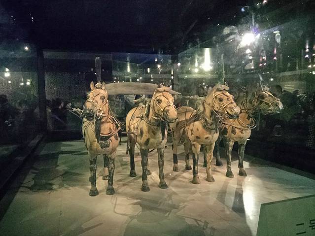 拖儿带女的进入一号展馆,兵马俑没看到,只看到一圈厚厚的人墙,好不容易靠女儿冲锋陷阵冲进去拍了几个照出来了,唉,拍的照片还不如网上看到的清楚呢,当然有钱的大爷也可以下去一层,在兵马俑上方的平台上尽情的摆剪刀手,条件好像是200块10分钟。