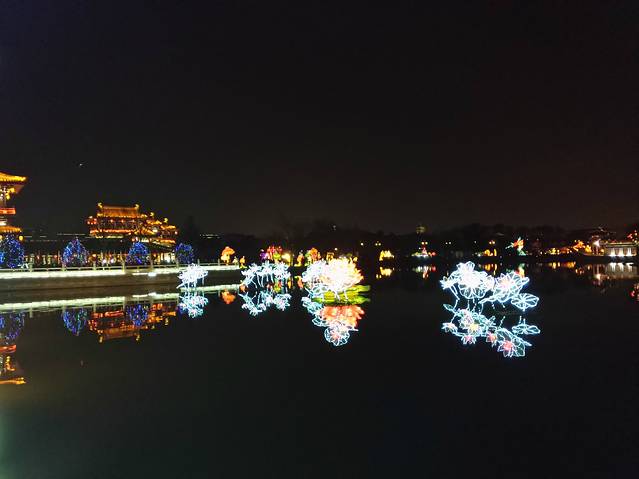 早上起来又去逛了回民街,中午到了陕博馆(每周一闭馆,大家注意哦),看着一眼望不到头的免费领票排队,果断花20大洋一个免排队进入,咱时间就是金钱,一天上下10来块的人怎么可以把时间浪费在排队上。一路蹭着导游看下来,只恨自己的耳朵不好使啊,这讲解员讲的也太轻了,完全跟我作对啊。陕博给孩子们讲述了人类进步的过程以及各个朝代的代表名品,也给大人一次回顾历史的机会,不过好像都还给老师了。陕博-大雁塔-大唐芙蓉在一条线上,所以可以花一天时间游玩,大唐门票80,我们是6点以后进的,在淘宝买了31元的灯展票,所以花31的钱游了大唐还看了灯展,合算啊,再说大唐看夜景还可以,其他也就是一个有湖的公园,80门票不合算,大概西安很难看到湖,所以围了个围墙卖门票吧。要是你还有精力可以去看大雁塔的音乐喷泉,当然也可以下午去看,每个整点开喷。买大门票就免了,玄奘法师与俺无缘。
