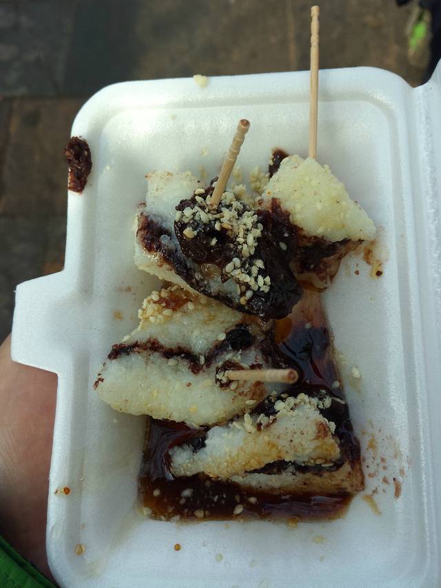 这个是早上买的,赵佳宝凉糕,大米做的,我以为是糯米做的,有点散,对于爱吃甜食的我来说还行吧,个人觉得还是东南亚甑糕好吃。