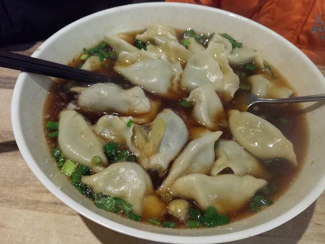 这个好吃,酸汤牛肉韭黄饺,而且便宜,这么一碗三十个半斤才12元。