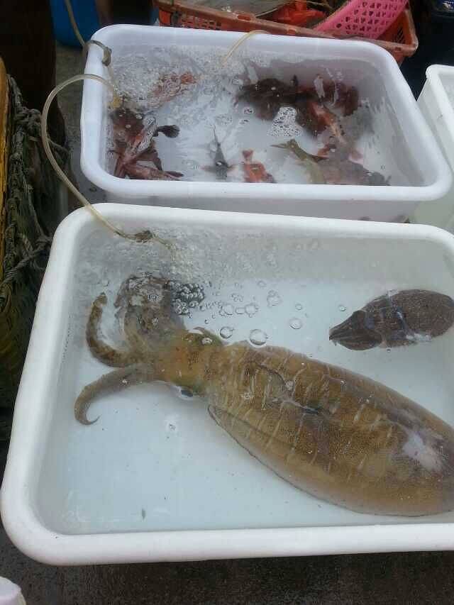 这个大鱿鱼60块钱一斤,这个价格和广州相比,确实便宜了哦。