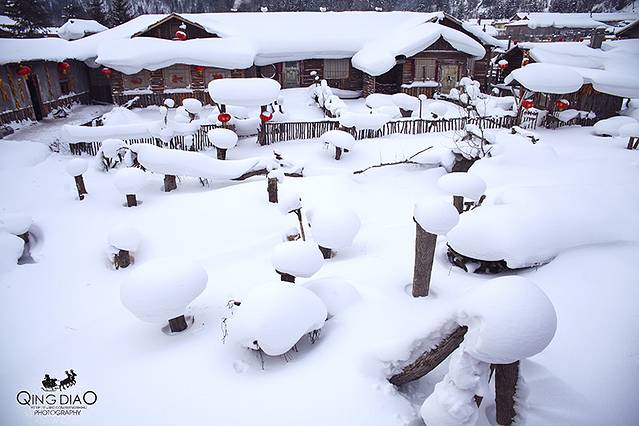 梦幻家园里是专门用于摄影的基地,游客有专门的通道,里面有雪的地方是进不去的,所以保护的很好,看起来也特别的美,不过其实拍摄这里还是等傍晚时分灯光亮起时用三角架拍摄才是最佳时机。