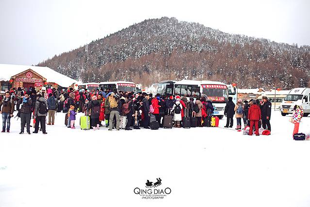 由于电视的宣传,现在雪乡也是越来越火爆,景区的人也非常的多,物价也比较贵,上图是即将离开的旅行团。
