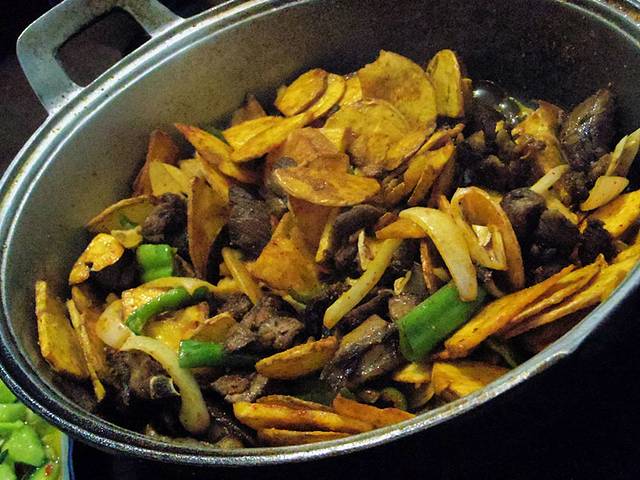 到了七点多于爸来喊咱们吃晚饭去~于是在当地找了一家炕锅羊肉开始了大口吃肉小口喝酒的最后的晚餐TAT