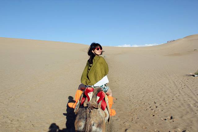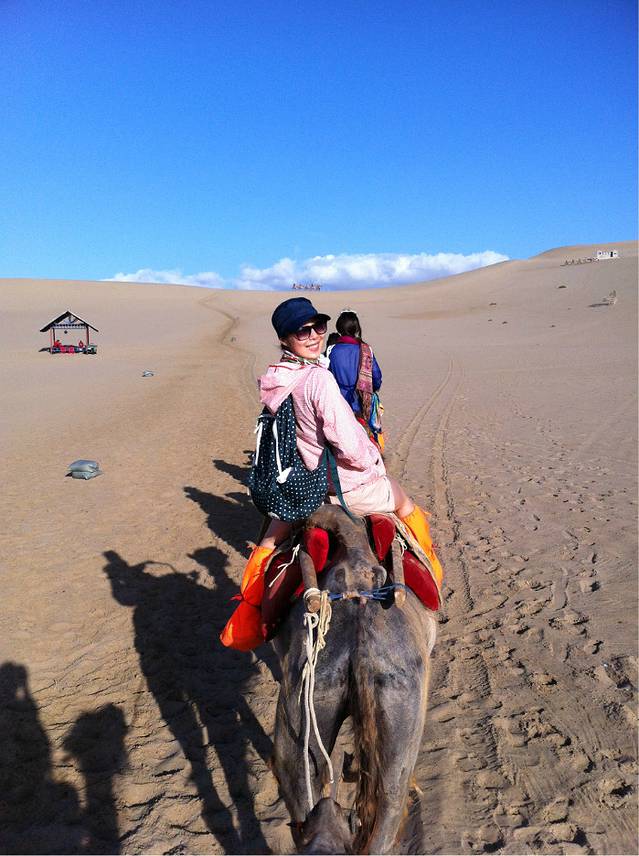 骑骆驼拉~半小时要一百 贵是蛮贵拉 但后来证明还好骑了 不然在沙漠里真的寸步难行!