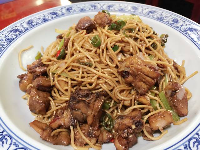 辣子鸡炒面,很辣,但是很好吃