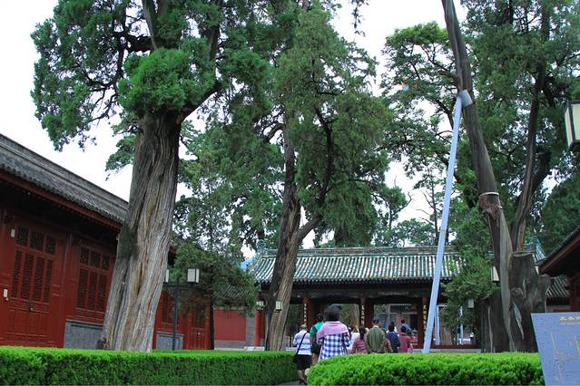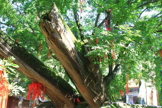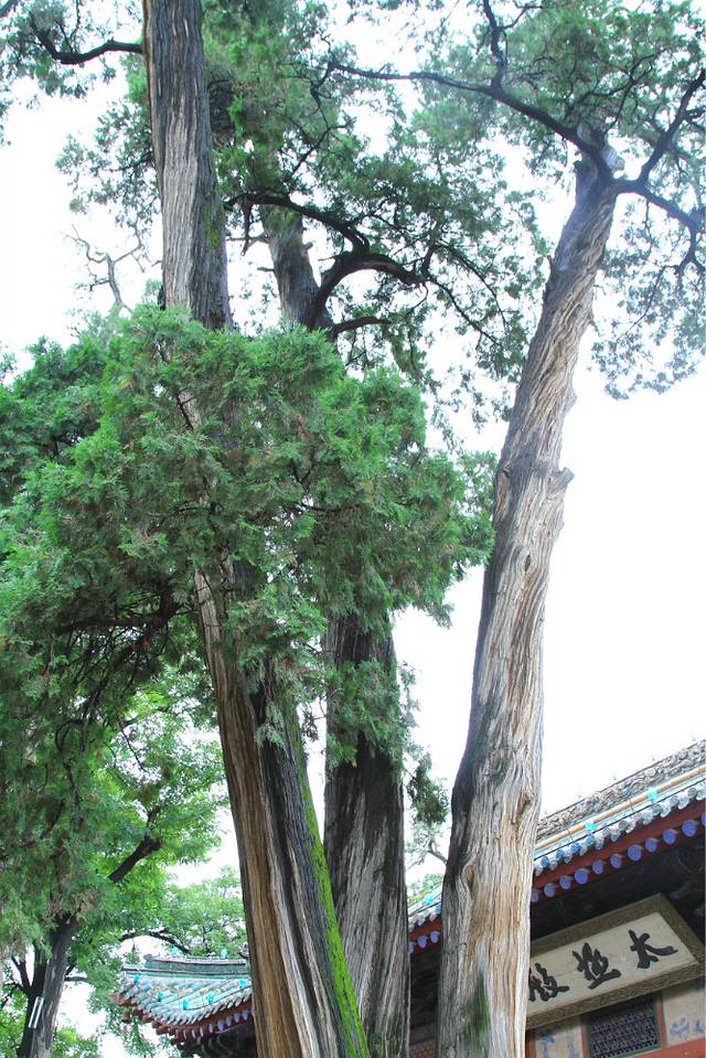 于是,问呗。真正的答案是:除去中间那棵小叶朴外,其他三支分叉同属一棵树——也就是2500年树龄的春秋古柏。