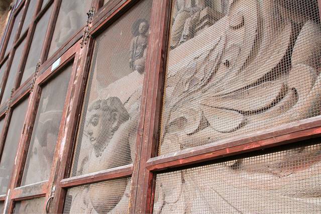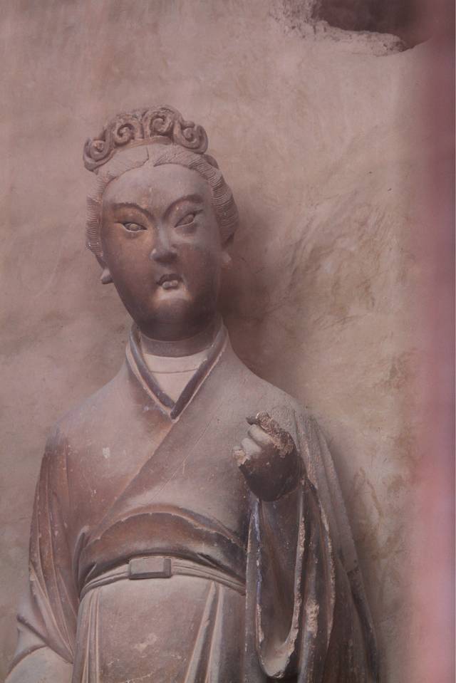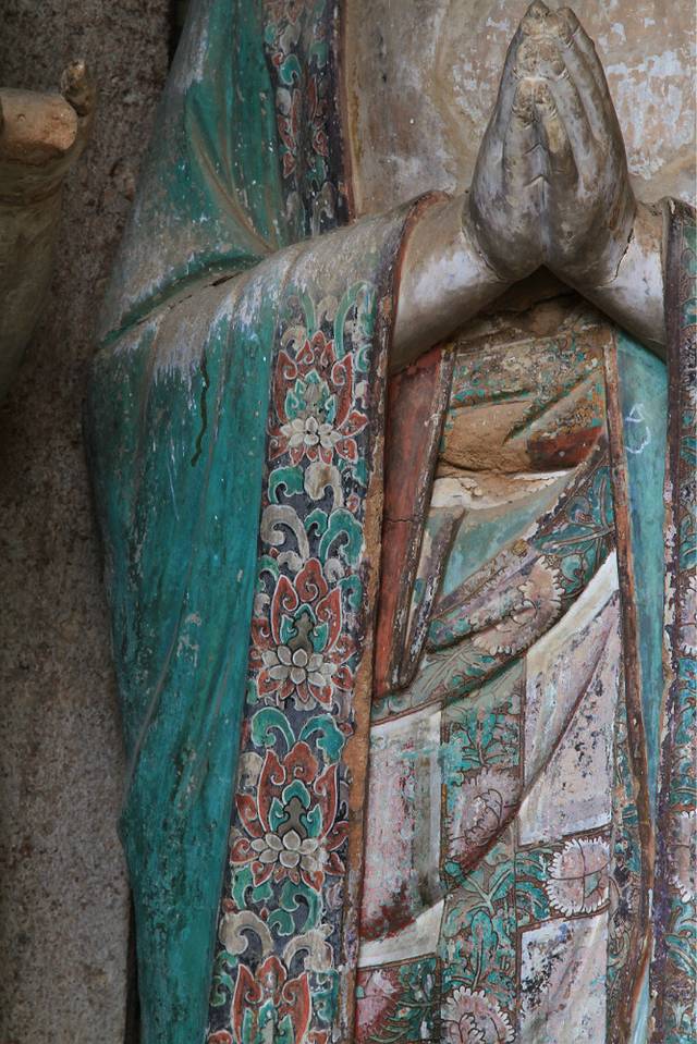 看见没?基本都是这种铁栅栏。这个窟算最浅的,栅栏离石雕最近的。