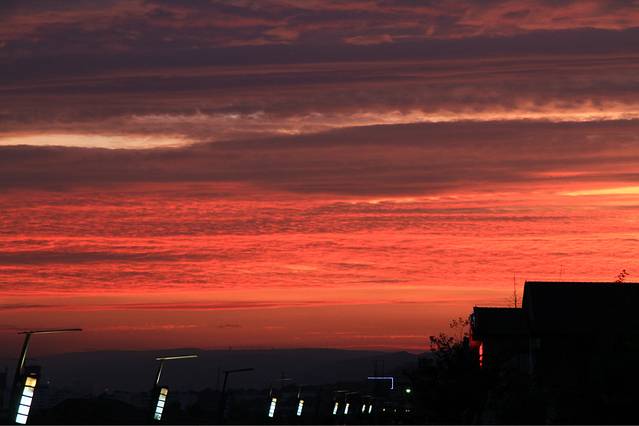 第一天从下雨到晴天,晚上出现了好漂亮好漂亮的晚霞