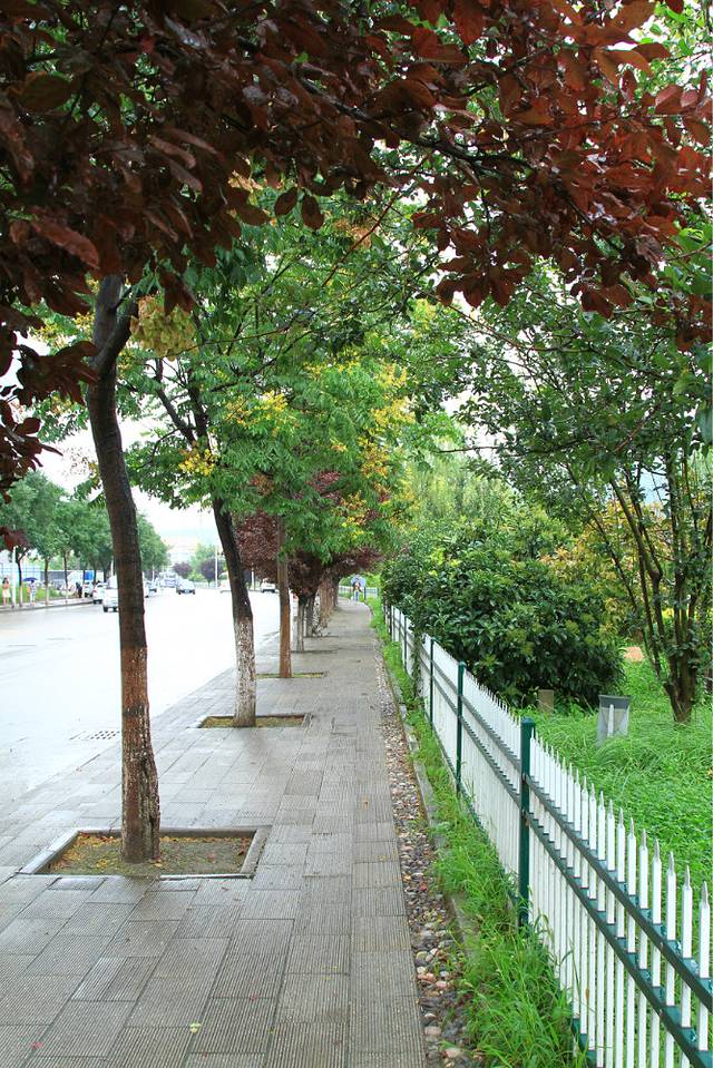 干净的街道,雨后的滋润,让人仿佛不在西北,而是江南。