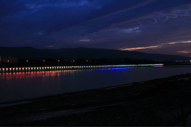 夜晚的淮河静谧,就算有霓灯,也不显浮躁,而与整个城市气氛溶于一起。