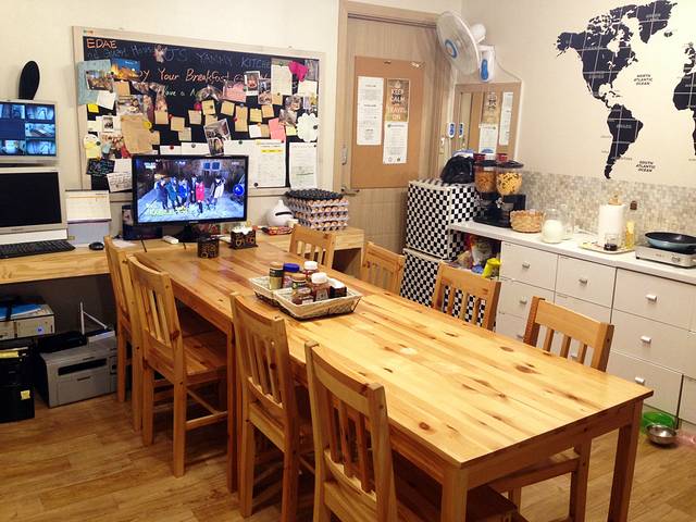 民宿吃早餐的地方,早上10点前提供(韩国时间~记得调表哦~),有面包机有炉可以烤面包煎鸡蛋泡玉米片牛奶咖啡,桌子上有果酱黄油,还有电饭煲里面有热腾腾的米饭!但是吃完要自己洗盘子哦~\(≧▽≦)/