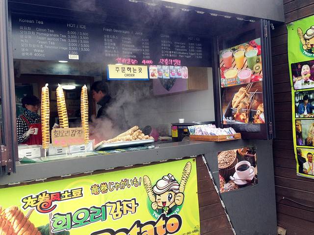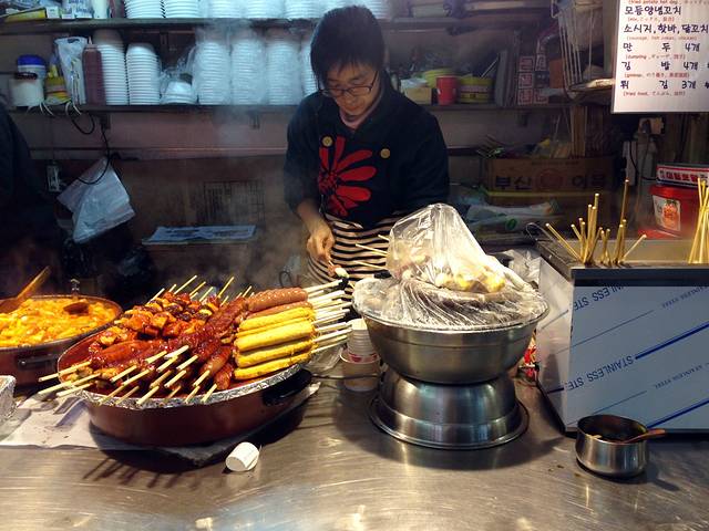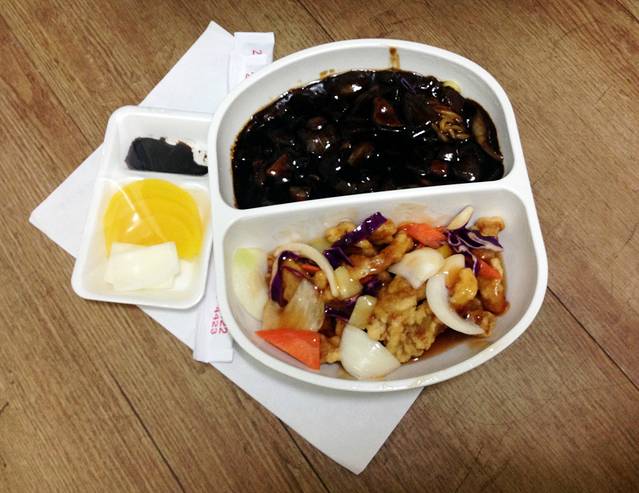 接下来就是在明洞各种逛啦!明洞中国人太多了,店员几乎都会中文的,完全不用担心语言问题,在明洞一边逛一边吃路边摊,8点左右累的不行就回民宿了。晚上有点饿,拜托了前台帮忙叫了外卖,炸酱面加糖醋肉!
