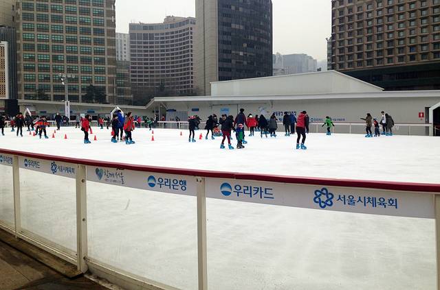 每年冬季首尔市厅广场会划出一块供市民溜冰玩儿,入场费是1000每人!(韩币哦!)不容错过!分时段,一场一个小时,每一场之后会有半个小时的维护时间。