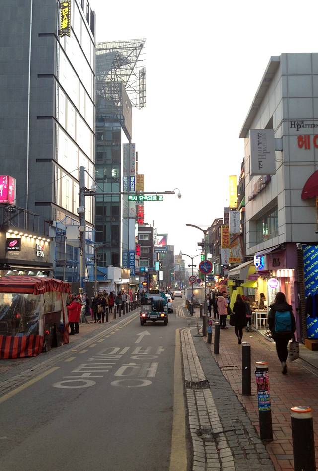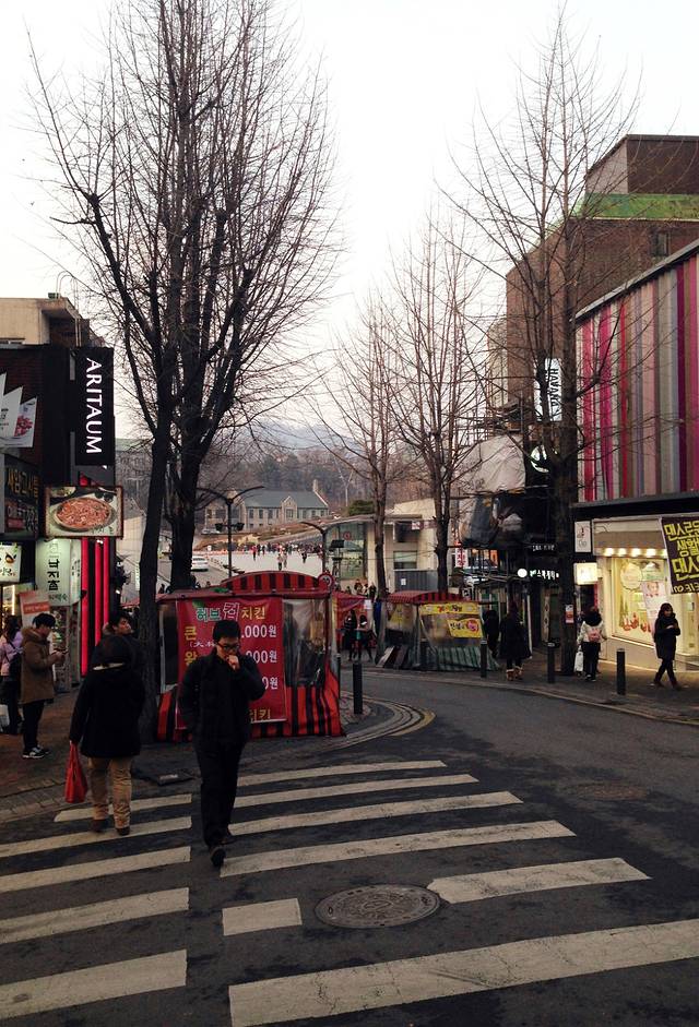 从梨大步行到到新村的八色烤肉,不太远,顺便能逛逛街。