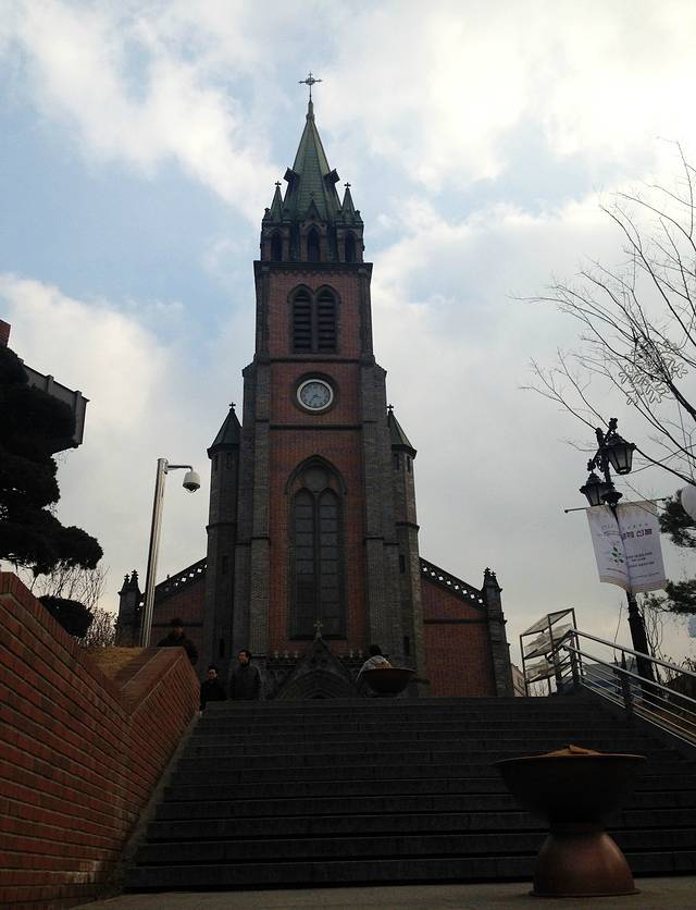 吃完饭就去明洞圣堂,是一个天主教堂。虽然在明洞圈里但圣堂周边很安静,我们进去教堂,很大很宏伟,琉璃瓦非常漂亮,我们在里面静静坐了10几分钟,感受了一下宁静氛围,还有很多人是在虔诚祷告的。