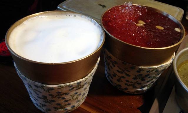 回忆便当非常棒,吃之前要摇匀,摇不匀就打开拌匀吧哈哈。我们点了一杯柿子拿铁和五味子冰茶,柿子拿铁是一种奇妙的味道~好难形容( >﹏<)就是有柿子的那种甜味,又有拿铁的那种苦苦的味道~请自行想象~五味子冰茶据说很酸~~~喝不完可以打包带走~\(^o^)/~