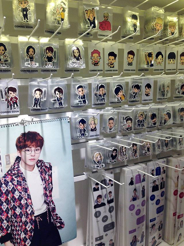 sm的新周边店,14年12月才开,据说刚开的时候排队排出门口要拿号,工作人员还给排队的返发暖宝宝来着,这次我们去没有太多人,大概排了5分钟就进去了,但!是!我们伯贤周边小王子!基本!都!sold out了!/(ㄒoㄒ)/~~