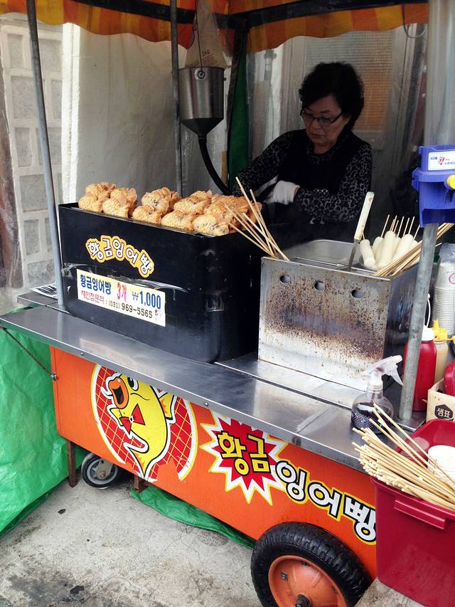 鲷鱼烧,红豆馅儿,新鲜出炉,3个1000韩币,赞!
