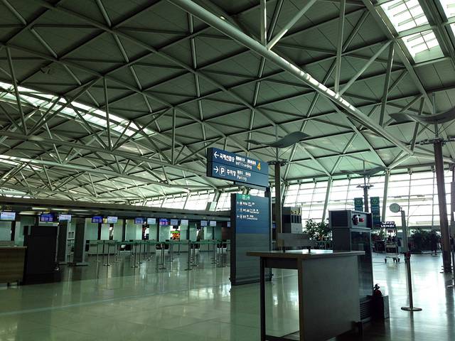 飞机是凌晨1:50起飞,到了仁川是韩国时间早上6点半,在机场洗个脸搜集一下各种地图,换了一点韩币,(机场汇率一般都很低,换能够到市内的交通费就行,在明洞换汇率更好!我们两个人就先换了400人民币,当时机场汇率大概是153左右)