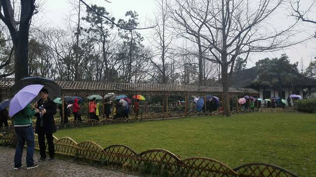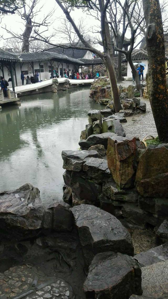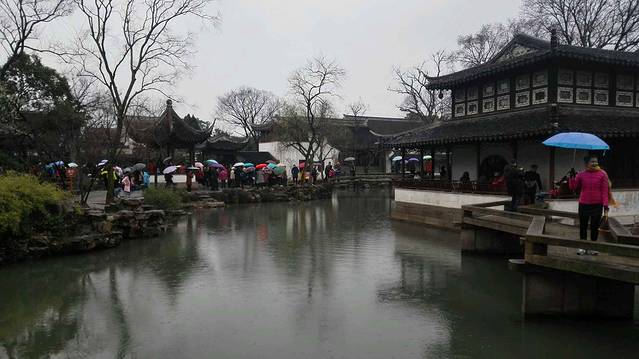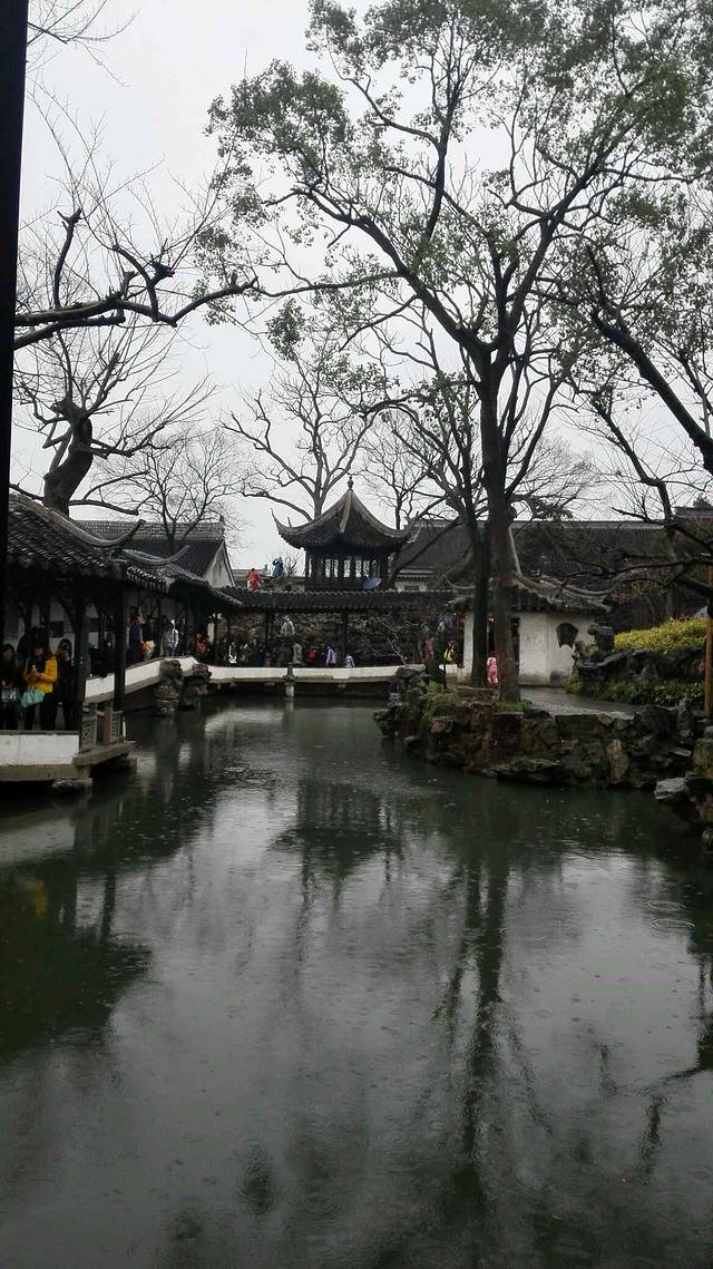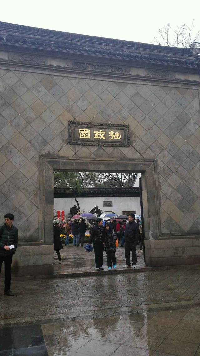 拙政园,拙政园是苏州四大名园之一,江南园林的代表,苏州园林中面积最大的古典山水园林。位于苏州市东北街一百七十八号,始建于明朝正德年间。这一大观园式的古典豪华园林,以其布局的山岛、竹坞、松岗、曲水之趣,被胜誉为“天下园林之典范”。 与承德避暑山庄、留园、北京颐和园齐名,该园是中国四大名园之首、全国重点文物保护单位、全国特殊游览参观点之一、世界文化遗产,迄今为止同时具备这四项桂冠的全国仅拙政园一家。 拙政园中现有的建筑,大多是清咸丰九年(1850年)拙政园成为太平天国忠王府花园时重建,至清末形成东、中、西三个相对独立的小园。门票70。进去一看好大的说,各种旅游团,人是特别的多,其实园林也是有典故的,若是只是这样走会觉的没意思,可以跟上旅游团队,侧旁听听导游的介绍。由于下雨没有怎么停留,但是也把整个园林走了一圈。