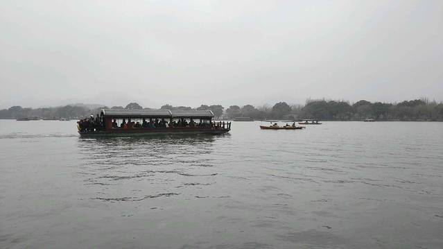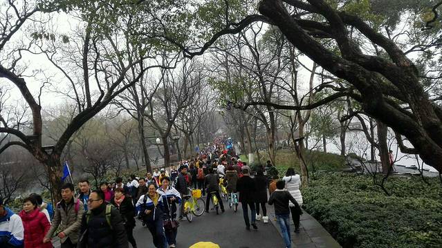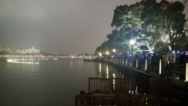 一早起床游西湖,租单车环游西湖,西湖十景形成于南宋时期,基本围绕西湖分布,有的就位于湖上。苏堤春晓、曲苑风荷、平湖秋月、断桥残雪、柳浪闻莺、花港观鱼、雷峰夕照、双峰插云、南屏晚钟、三潭印月,西湖十景个擅其胜,组合在一起又能代表古代西湖胜景精华,真心觉得西湖大,有朋友说冬天的西湖没有夏天的美,但是在我看来冬天的西湖也很美,夜景不错。其实各有各季节的美,感觉江浙一带四季分明,不像深圳只有冬天跟夏天。唯一的遗憾就是没有去河坊街没有去南宋御街。游玩到差不多的时候就去买特产了,各种糕各种酥各种藕粉,说实话我对特产这些很不感冒,但是一场出来旅游还是要带点特产给大家品尝下的。买完特产呢再回到西湖附近吃晚饭,晚饭后看7点的西湖音乐喷泉(下雨中),音乐喷泉时间是7点到9点,不知道是不是看过音乐喷泉感觉就那样,对那里的不是特别震撼,估计跟播放的音乐有关系,我们听到的都是比较柔和的歌曲,若是《鸿雁》估计会比较好听好看。