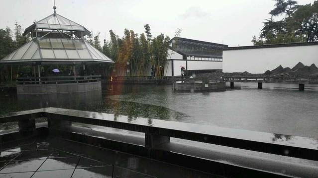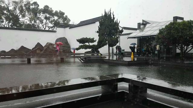 苏州的第二天,游玩苏州博物馆,拙政园。去到目的地的时候,下雨了!博物馆周一是闭馆,不需要门票,但是要排队,感觉这个博物馆没有深圳的大,内容也没有那么丰富,但是建筑比深圳有感觉,比较有自己城市的特色,古香古色。苏州博物馆设计者为著名的建筑设计大师贝聿铭,建筑和相伴的忠王府古建筑交相辉映,总建筑面积26500平方米,其中忠王府建筑面积7500平方米,地面一层为主,局部二层;新馆建筑面积19000平方米,为充分尊重所在街区的历史风貌,博物馆新馆采用地下一层,地面也是以一层为主,主体建筑檐口高度控制在6米之内;中央大厅和西部展厅安排了局部二层,高度16米。“修旧如旧”的忠王府古建筑作为苏州博物馆新馆的一个组成部分,与新馆建筑珠联璧合,从而使苏州博物馆新馆成为一座集现代化馆舍建筑、古建筑与创新山水园林三位一体的综合性博物馆。