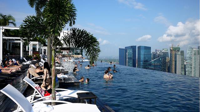 第四天 继续睡。。。。下午去了Marina Bay Sands订的房间 Check In,然后冲上楼顶游泳,一直游到下午5点,坐地铁去Downtown East和大部队会合,海边烧烤