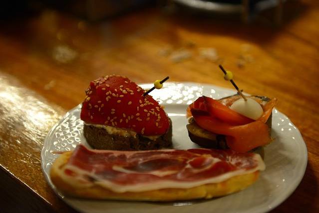 火车换地铁,回到马德里的住处已是晚上6点半,稍作休整,我们又去圣米盖尔市场吃了几个TAPAS,其实并不饿,这次品尝了一种小鱼,应该叫SURIMI,橄榄油稍微拌一下,鲜美有嚼劲,后来在其他城市就没吃到过了,很是怀念。