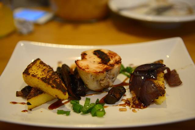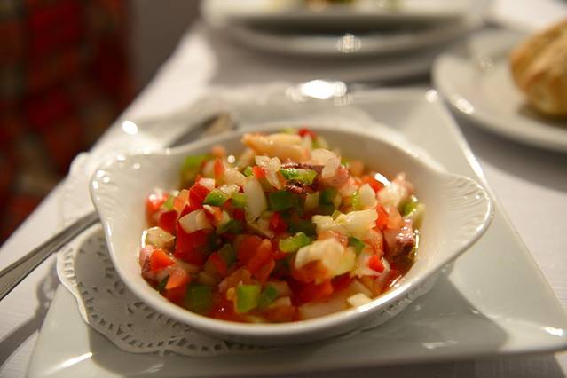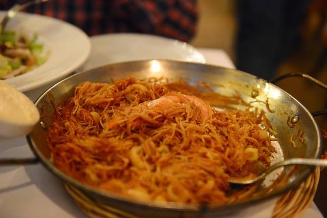 La Fonda餐厅很受欢迎,也许是网上推荐的缘故,一顿饭的时间看到好几张中国面孔^_^服务生对东方人态度傲慢,那么些天了,我们也已习惯。上菜速度超级慢。点了恺撒鸡肉色拉、烤蔬菜(番茄、芦笋、土豆和茄子,配的蘸酱不错)和海鲜米粉(和海鲜饭一个调调,把米饭换成了米粉,这家店米饭必须2人份起售,米粉却不受限制),再来一杯Sangria和一杯橙味芬达。色拉、烤蔬菜味道普通,但海鲜米粉的味道却美好得一直刻在我脑海里。另外还记得他家的Sangria酒放得多,后劲十足,导致我后来在海港像疯子一样不停地唱歌~
