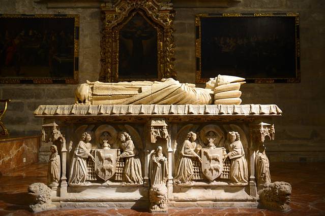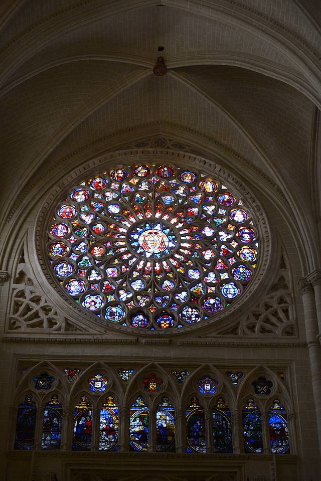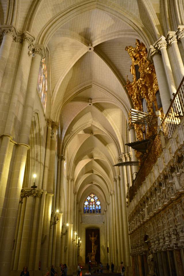 之后来到托莱多大教堂,门票8欧/人,包含语音导览,没有中文版本的,只能听英语讲解,但根据语音导览参观能有个次序,不至于乱走瞎逛。这座教堂是西班牙首席红衣大主教的驻地,从里到外极尽奢华,各种雕塑、绘画应接不暇,教堂的门楣和外部雕刻也非常精美,午后的阳光穿越教堂的彩窗玻璃投射到雕塑上,五彩斑斓。