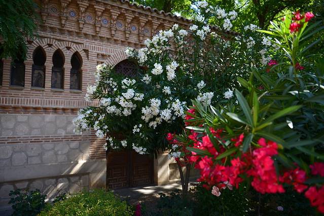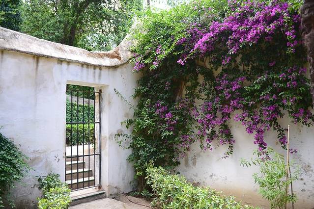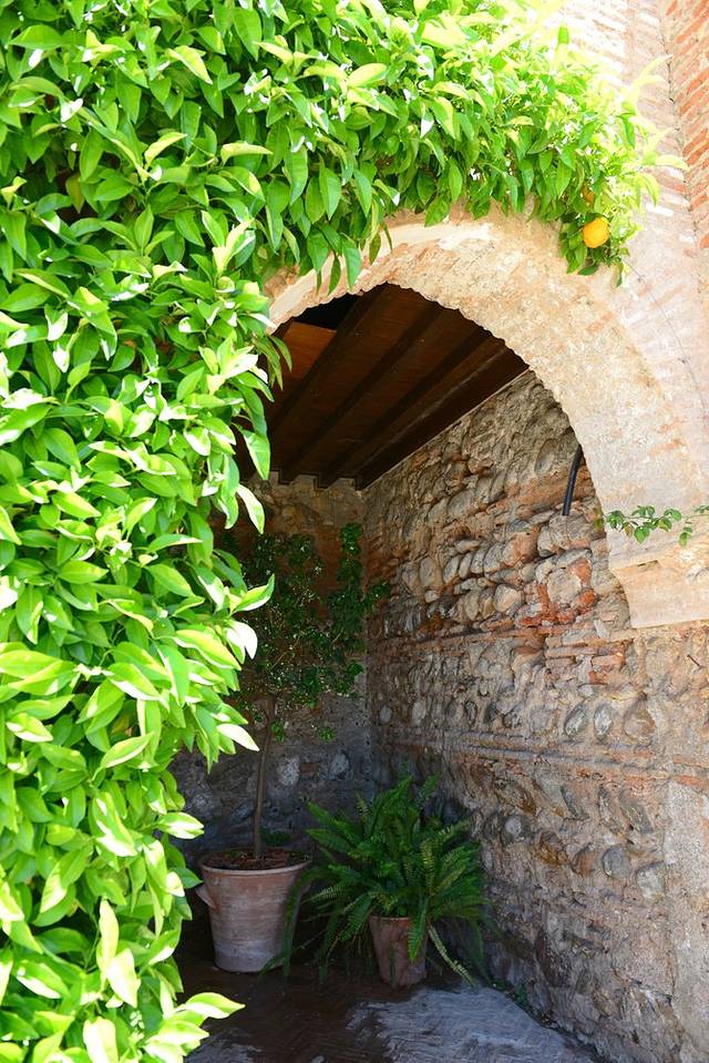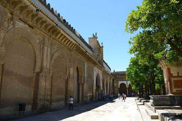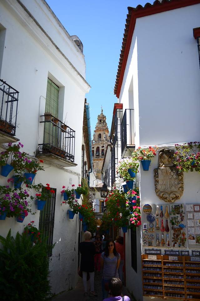 小城就是小城,从火车站出来,高高的棕榈树和悠闲的行人告诉我们已经来到了安达卢西亚地区。拖着行李沿着街心花园走个10分钟,就是我们下榻的欧洲之星酒店(这家酒店标了五星,房间空间不小,干湿分离,设施先进,但后来发现细节上没有设计好,比如浴室的门缝不够紧贴,水很容易就漏到门外的地面上,洗手盆的水池太浅,容易溅得一塌糊涂),check in安顿下来,出门朝东100米便看到了科尔多瓦老城,土黄色粗粝的城墙拱卫着高大的石质城门。城门外有一流动鲜榨橙汁摊,3只新鲜安达卢西亚橙不加水不加糖,原汁原味在你眼皮底下变成一杯橙汁,只要1欧元,再加上一小块冰块,绝对是这炎热天气里的最好享受。喝完橙汁,我们开始在窄窄的老城小巷中感受它的独特风味:巷陌两边的墙上缀满了一盆盆各色各样美丽的花朵,曲径通幽的一扇扇小门里总会给你惊喜,或明快或端正的庭院让人目不暇接;反倒是期望颇高的百花巷,只是一条分外拥挤的小巷配上点盆栽花,有些名不副实。