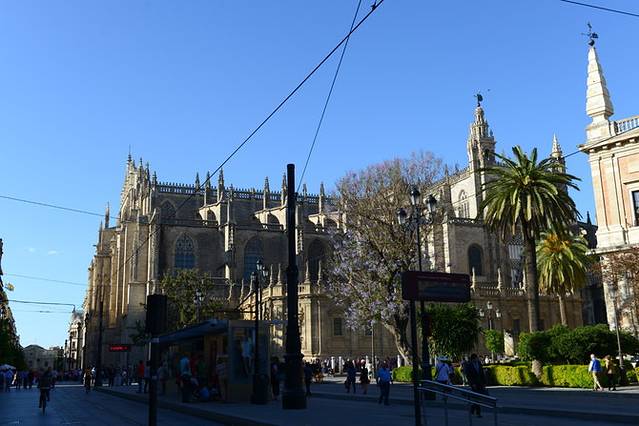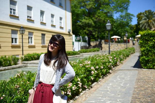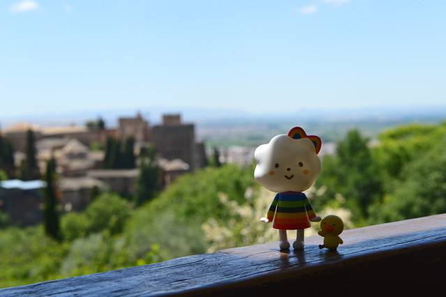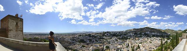 早上睡到自然醒,拉开窗帘,阳光透进屋子~拿出昨晚买的三明治和牛奶,自己用烤箱和咖啡机捣鼓了早饭,自由自在。餐后去住处附近的大教堂旁边兜了一圈,游客也不少,教堂门口不少吉普赛女人拿着绿色植物和人们搭讪,林达的书里曾提到过,千万别搭理她们~当你接过植物,她们就会开始向你诉说你的未来,并且问你要钱。格拉纳达地处安达卢西亚地区南端,气温较高,建议大家戴好帽子和墨镜,女生防晒衣也要穿好,以免晒伤。坐巴士上山前我们去超市买了水和干粮,因为做功课时看到有人说阿尔汉布拉宫里面只有一家餐馆,自带干粮最明智,虽然一开始重了些。