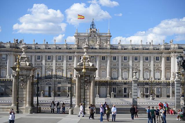 世界上最远的距离,就是明明离你那么近,却无缘了解你T_T刚到王宫门口我们就察觉到了一丝不寻常:游客很多,但为啥没看到买票的队伍?绕着大门兜了一圈,我们才发现似乎没有人进去参观,隔着围栏往王宫广场上看,一个人也没有,顿时感觉不妙。找到售票处,看到一位工作人员正向游客解释着什么,仔细一听才知道今天王宫有重要活动,不对公众开放。由于第二天9点就要坐火车离开马德里去科尔多瓦了,而王宫的开放时间是上午10点,我们注定与它无缘。不过也有收获:省了20欧,以及拍摄了可以做明信片的照片^_^