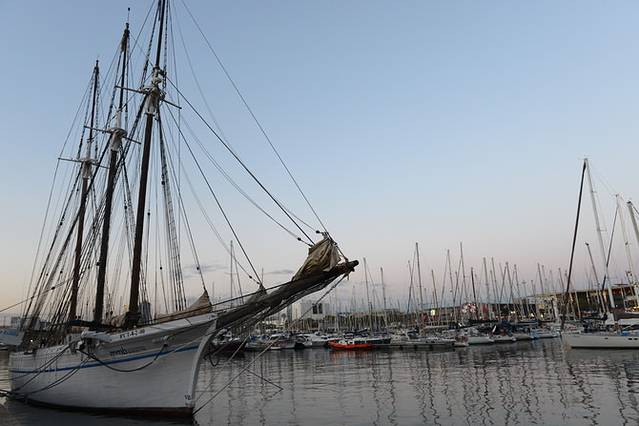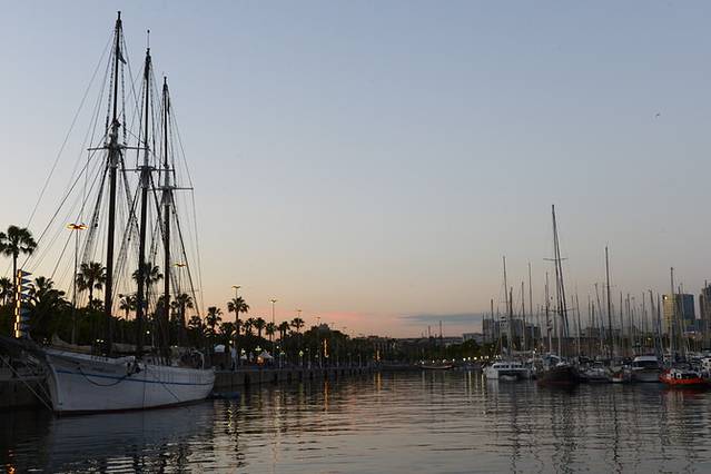 奥林匹克港就在兰布拉大道的尽头,夕阳西下,粉色晚霞铺满天空,港口停泊着白色的帆船、游艇,海鸥们潇洒飞过,人们三三两两漫步、嬉戏,坐在岸边就这样呆呆望着海面就好满足。穿过奥林匹克港有一个比较大的购物中心,人不多,主要都在享用美食^_^B1超市还不错。随意逛逛,享受着美丽的海港夜景,不经意间已经近10点,返程回到兰布拉大道,远远就看到射灯映照下的哥伦布雕塑手指远方暮色,久久不愿离去。