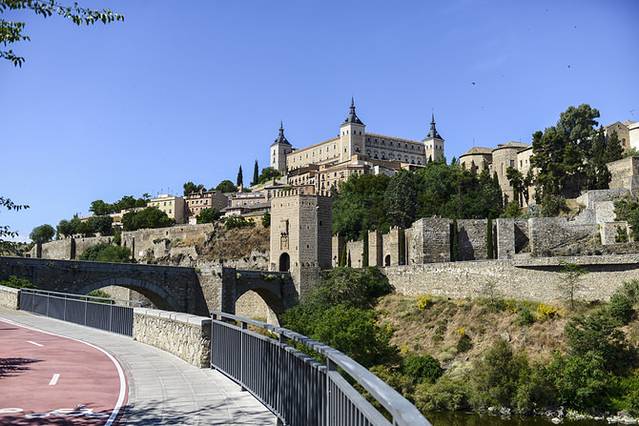 托莱多可以说是一座建立在山上的城市,它位于马德里的南部约80公里处,从马德里乘坐高铁只需要40分钟就可以抵达,也是来西班牙游客们必去的著名小城。早在公元6世纪,由于地势险要、易守难攻,它就被当时刚刚打败罗马帝国而统治西班牙的西哥特人选为了首都。然而,随着城市人口的不断增加,它作为山城的劣势逐渐显现了出来,城市规模无法扩张,影响了首都的正常功能,于是仅仅150年后都城就被迁移到了马德里,而托莱多则被作为故都长久的保留了下来。