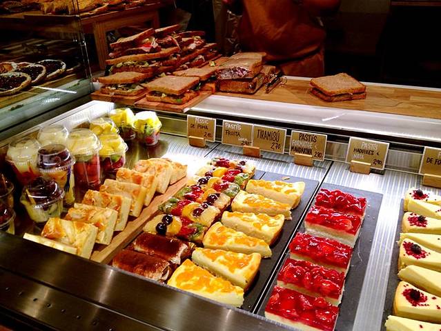 在巴塞罗那的第三天,一大早,两人分头行动。某人直奔巴萨球迷心中的圣地---诺坎普,我则舒舒服服睡到自然醒,笃悠悠来份羊角面包配咖啡,去Gracia大道和Corte Inglés商场逛逛。Corte Inglés商场很大,买到了心爱的乐葵模具(原产地就是板鸭国哦)^_^超市熟食柜台生意超好,像银行办理业务一样先拿好自动打印的号码,叫号依次服务,称重计价,我们在这里解决了一顿午餐,不过这里的海鲜米粉是微波炉加热的,味道比餐厅那份差远了。商场对面的游客中心就能办理现金退税手续,很是方便。