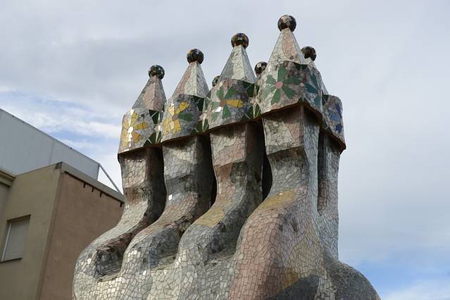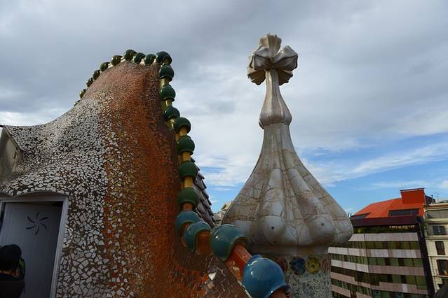 高迪设计巴特罗之家的灵感来源于这样一个故事:一位美丽的公主被龙困在城堡里,加泰罗尼亚有个叫圣乔治的男子为了救出公主,与龙展开了搏斗,他用剑杀死了龙,龙的血变成了一朵鲜红的玫瑰花,圣乔治把花儿献给了公主。巴特罗之家楼顶十字架状的烟囱代表了英雄男子圣乔治,而如鳞片般拱起的屋顶则代表了巨龙的背脊。