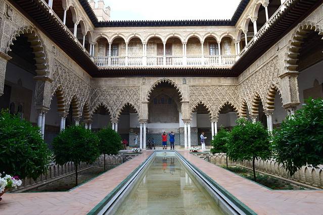 步阶而入,我们先来到了阿尔卡萨博物馆,这个博物馆其实是由一座美丽的阿拉伯风格庭院改建而成,整个庭院二层砖石结构,上层的墙面有着各种美丽的马赛克拼花图案,中间的庭院小巧精致。参观这个博物馆需要提前买票预约,排队的游客不少,我们便离开了。