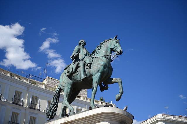 马德里的太阳是出了名的出勤率高,据说它是全世界晴天最多的城市,一出酒店门我们便感受到了它的热情,让人的心情一下子灿烂起来。考虑到长途赶路比较疲劳,我们决定当天先随便逛逛住处附近的太阳门广场、马约尔广场和丽池公园,然后晚上去米盖尔市场一探究竟。
