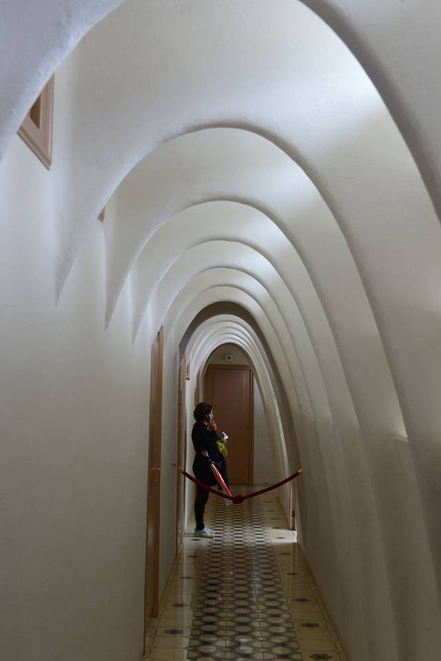顶楼其实是个小小的博物馆,介绍了高迪的各种设计理念,可以观看影片,高迪的建筑设计天马行空,他的手就好像魔法之笔,在哪里轻轻一点,就能迸发出生命力。他设计的家具也很独特,除了实用和美观,还细心考虑到了人体生物学特点,真是天才!参观房间,儿童房里婴儿车、小木马煞是可爱,厨房里有厨具和食材,印象最深的是粉色浴室。跟着语音导览参观下来时间并不长,总体而言,米拉之家能参观的地方不多,语音导览做得也不够好,不值这么贵的票价。