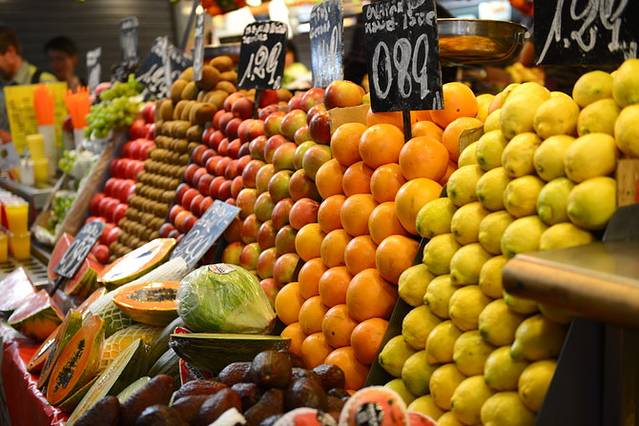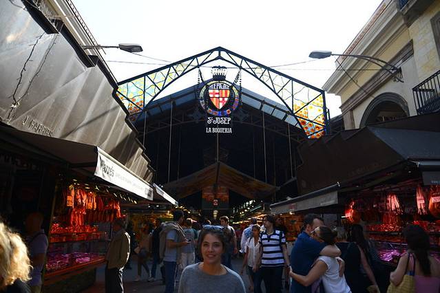 坐地铁到兰布拉大道,我们决定去波盖利亚市场看看。这个市场和马德里的圣米盖尔市场风格不同,露天大棚式的,外围店家以卖水果、果汁、糖果为主,商品摆放比较讲究,卫生情况也相对较好,水果、糖果们色彩鲜艳,码放齐整吸引人们的目光,我们喝了两杯果汁,味道一般;里面的店家大多是卖火腿和海鲜的,我们去的时候开张的铺面不多,不知何故?去的时候应该是饭点~但总的来说可买的东西不多,感觉比较乱,我们还是更喜欢马德里的圣米盖尔市场。