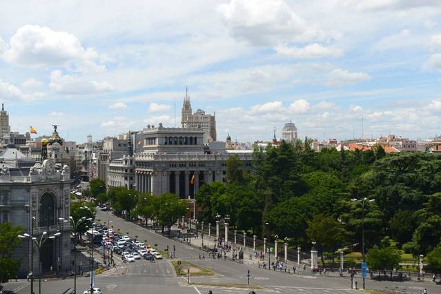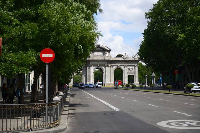 饭后想坐地铁回住处,途中路过了西贝莱斯广场,每次皇家马德里队赢得重大比赛的胜利后都会来这里庆祝,喷泉前的雕像是女神西贝莱斯坐在两只狮子拉着的战车上,午后阳光让这座雕像熠熠生辉。向东望去,可以看到阿尔卡拉门,有人称之为西班牙的凯旋门,离阿尔卡拉门不远就是丽池公园的正门。我们很喜欢普拉多博物馆到西贝莱斯广场的这段路,感觉和去年在维也纳寻找小金人的那条路很像,幽静却不乏大气,这一路空气中仿佛也有着欢沁的味道。