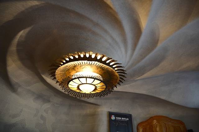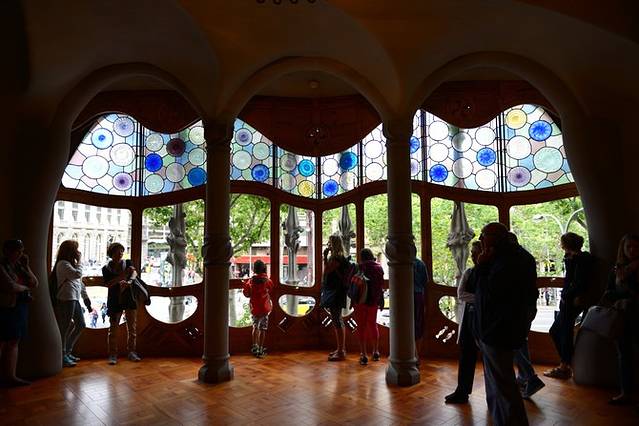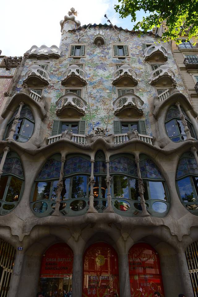 散步回旅馆办理入住手续,进房间后还是有惊喜的:房间比想象中的宽敞,浴室也大^_^洗漱过后,精神面貌顿时焕然一新!于是立即出发去巴特罗之家~刚出门发现下雨了,不过后来在巴特罗之家参观的时候雨就停了,这次旅行我们就邂逅了这一场短短的阵雨。到了巴特罗之家,无比庆幸自己已经网购了门票,排队那个长啊~我俩凭打印件上的二维码直接进入,照例买了语音导览,这里有中文版,很赞!