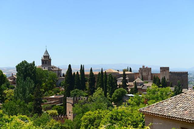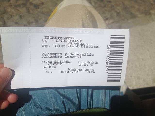 第二天的主要任务便是游览阿尔汉布拉宫,它是中世纪时摩尔人在西班牙建立的格拉纳达王国的王宫,坐落在格拉纳达城东的山丘上。“阿尔汉布拉”,阿拉伯语意为“红堡”。出发前两个月网上购票(购票地址:www.alhambra-tickets.es),只买到了下午2点入宫的门票,且纳塞瑞斯皇宫(los Palacios Nazaries)的参观时间只有下午5点以后可以选择~可见阿尔汉布拉宫的人气~而且5月底6月初也是板鸭旅游旺季的开始,所以想去参观的亲们还是提前网上购票为妙,否则很有可能无法进纳塞瑞斯皇宫参观(每小时限制人数进入),甚至入宫的门票也会售完。