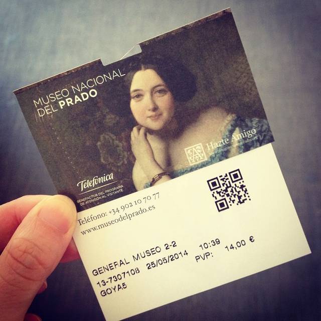 在马德里的最后一日,我们原计划的行程比较宽松,主要参观普拉多博物馆和王宫。从我们的住处去博物馆很方便,乘坐地铁L2线到Banco de Espana站或者 Atocha 站,再步行一段路即可到达。博物馆门票14欧/人,如果想要收藏一本官方指南,和门票一起买是23欧,制作精美,内容丰富,很是值得(因为在博物馆的纪念品商店,这本官方指南的价格是19欧,所以买门票的时候别错过啊)。