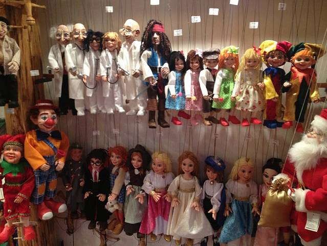 那条步行街上的一家牵线木偶店,很多灵异造型,价格昂贵。。。