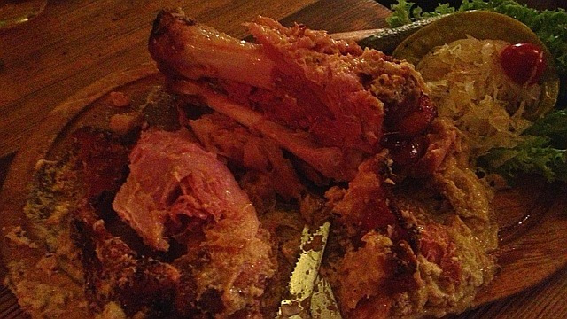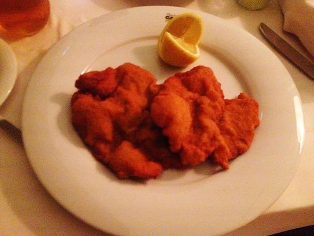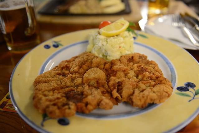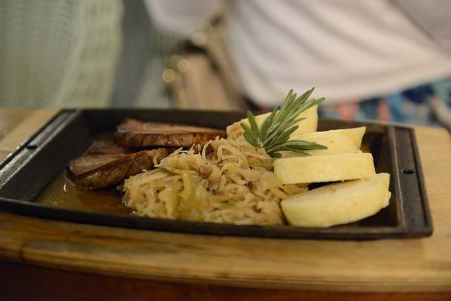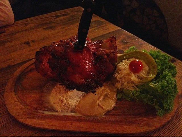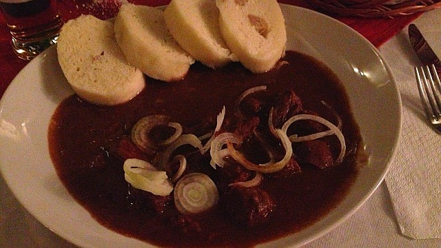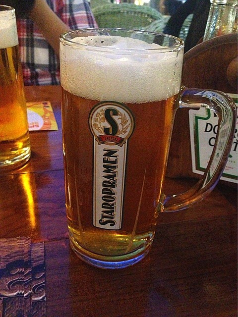 从国家歌剧院走到查理大桥桥墩处大约1公里左右,天色已暗,查理大桥游人如织,著名的步行街就在后面,街道两边是各色各样的小商店,有可爱的玩偶、鼹鼠、黑光剧院、性博物馆 还有各种小餐馆、CAFE和酒吧,任君挑选 我们就在步行街口一家四星级酒店的餐厅U ZLATEHA STROMU(地址KARLOVA 6)用了晚餐,捷克啤酒真好喝,在上海我喝啤酒像喝白水一样没感觉,到这边喝了几口竟然上头了 主菜点了评价颇佳的炸猪排,还有一个网上推荐的酸菜猪肉配白面包,炸猪排很惊艳!松脆鲜嫩!先生很是喜欢,我们在这家餐馆吃了三顿!!(后来到了维也纳才知道什么是更惊艳 )这顿饭人均大约150人民币